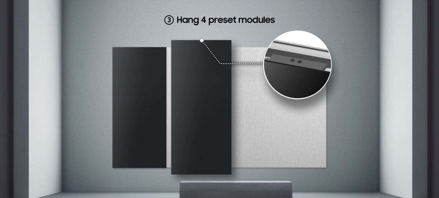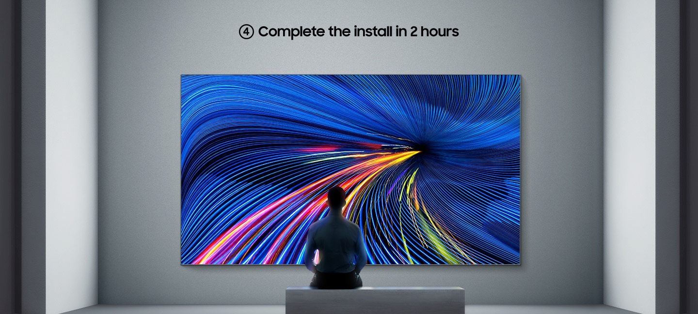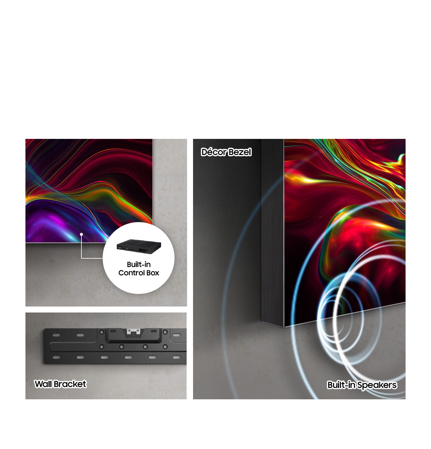 The Wall, kontrol kutusu, duvar braketleri, hoparlör ve dekoratif çerçeveleri ile çalışmaya başlamak için gereken her şeyi içerir. Ek satın alımlar veya bileşenler gerekmediğinden ekranınızı hızlıca çalışır hale getirebilirsiniz.