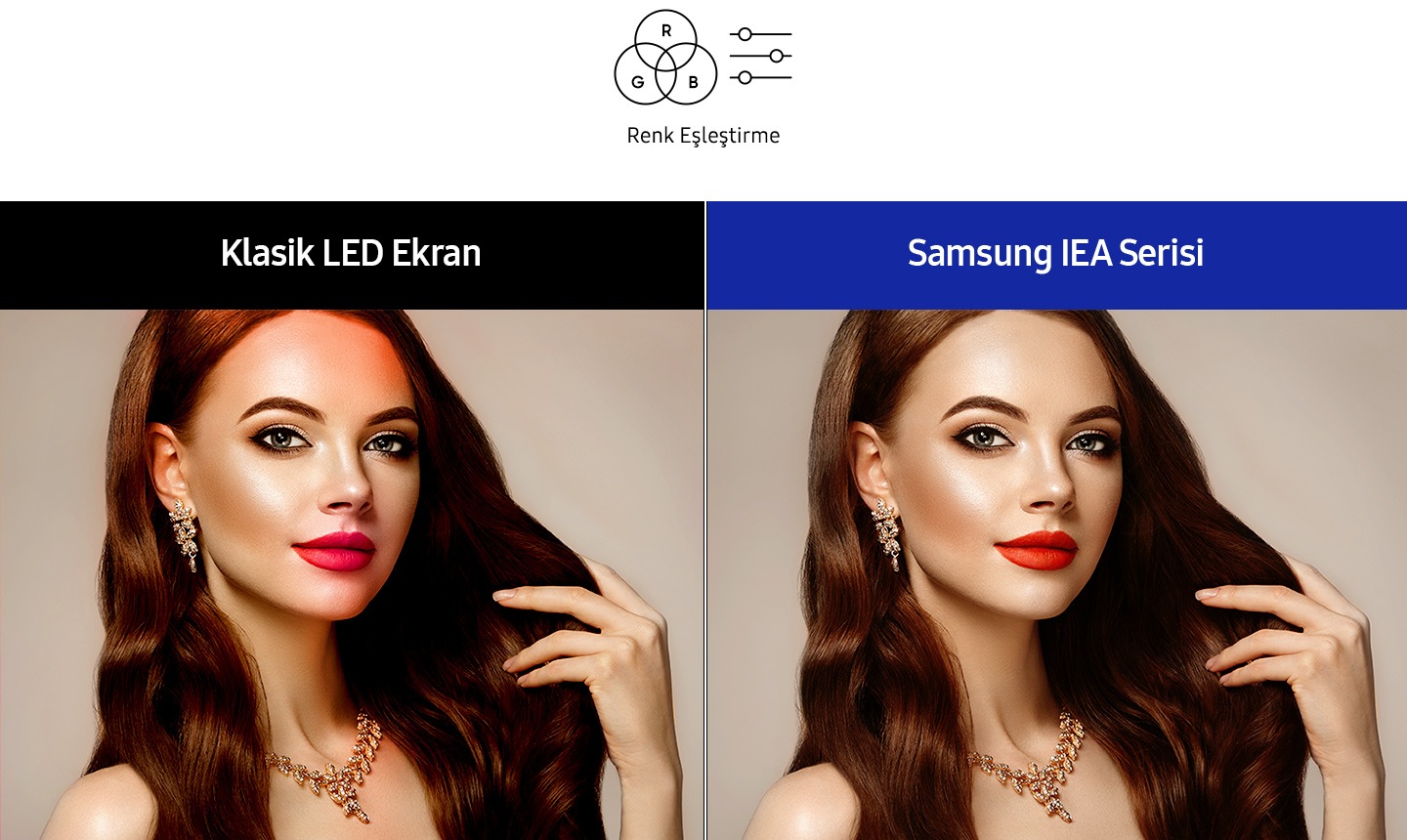 Klasik LED ekranlar, düşük gri tonlamalı ortamlarda kırmızı, yeşil ve mavi tonlarını sunmakta zorlanır. IEA serisi, kırmızı/yeşil/mavi tonlamasını koruyan ve düşük ışıklı kapalı ortamlarda zengin detaylı renk tonları sunan benzersiz algoritmasıyla bu zorluğun üstesinden gelir.