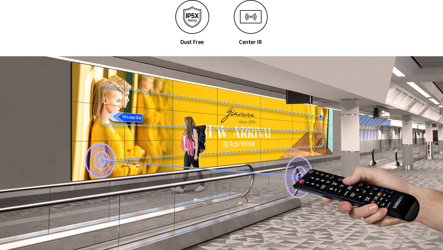 IP5X sertifikalı VMB-U serisi, toza dayanıklıdır ve tozlu ortamlarda ek bir kaplama uygulamaya gerek olmadan çeşitli çevresel koşullara dayanabilecek kapasitededir. Merkezi olarak yerleştirilmiş gömülü bir kızılötesi alıcı (IR), kullanıcının ekranı daha kolay ve daha esnek bir şekilde kontrol etmesine imkan verir.